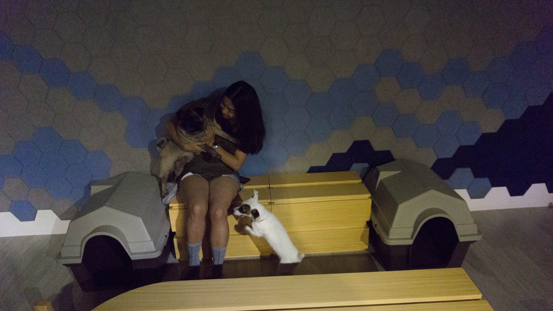 Upstairs was where we drank our drinks while playing with these cute little dogs: a Jack Russell Terrier, Pugs, and an Italian Greyhound. They’re playful and naughty. ;P